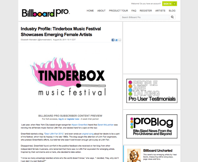Billboard Posted on August 30, 2011 by tinderboxmusicfestival Tinderbox gets recognized by Billboard! Check out the entire Industry Profile here! Share this: Click to share on Facebook (Opens in new window) Facebook Click to share on X (Opens in new window) X Like Loading... Related
