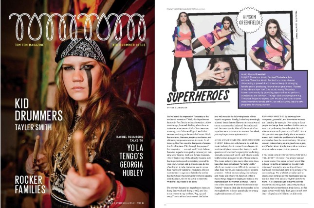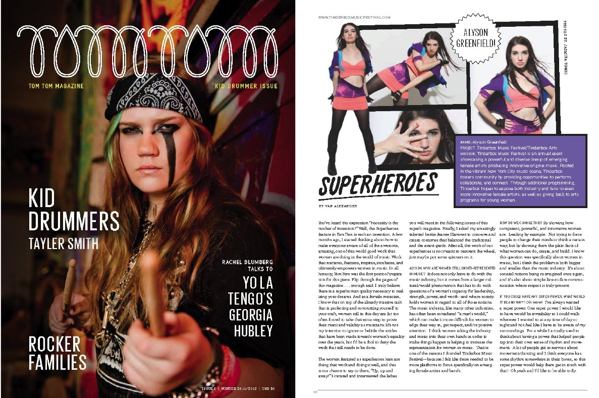 The newest issue of Tom Tom Magazine features our founder Alyson Greenfield in the SUPERHEROS series because of the work she does with Tinderbox. Check it out!