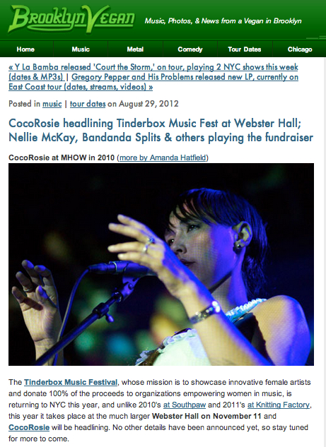 Brooklyn Vegan encourages you to attend Tinderbox 2012 and reminds you about our fundraiser happening on September 13. There are limited Fundraiser tickets available here.
