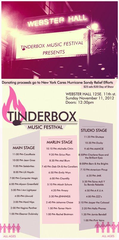 The awesome podcast Rubyfruit Radio dedicated their current episode to Tinderbox Music Festival. Heather Smith interviews founder Alyson Greenfield and then features music from artists Jenny Owen Youngs, Lisa Jaeggi, Shilpa Ray and Her Happy Hookers, Larkin Grimm, Lachi, Charlene Kaye, Hank & Cupcakes, and Kalae All Day. Click here to listen to Rubyfruit Radio Episode 218.